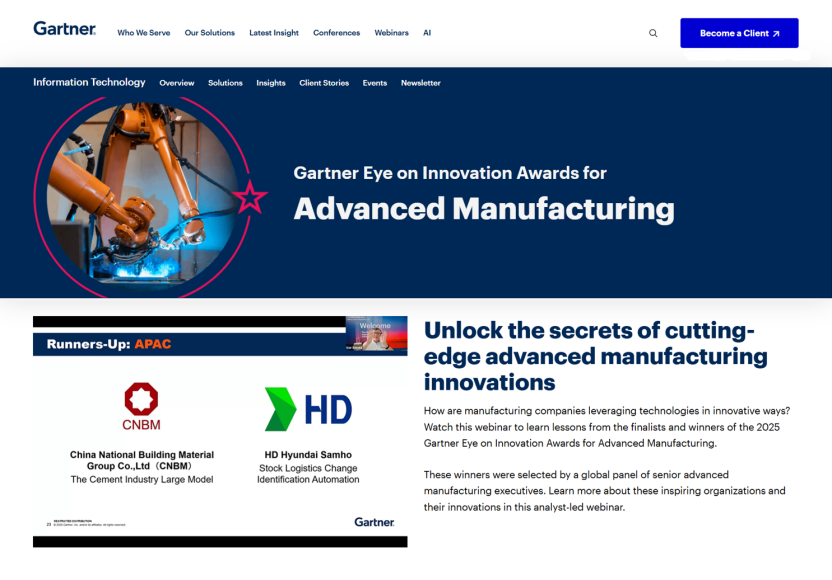 中国建材集团“水泥产业大模型”案例荣获Gartner“创新之眼”先进制造赛道亚军